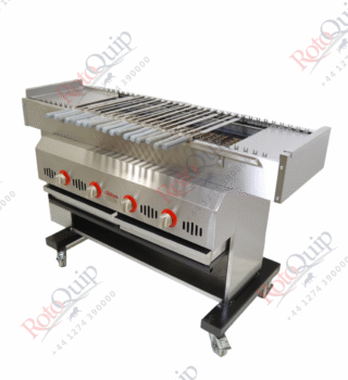 Whether you're boiling big pots of sauces or pan-frying delicious curries, the Rotoquip RCR Indian gas range has the functionality you need to get great results. Rotoquip range cookers are equipped with medium size cast iron burners on front for pan cooking, As well as large cast iron burners on rear for batch cooking simultaneously. Removable Steel rings, burners, trays and pan rack makes Rotoquip’s Range cookers an excellent choice in functionality and cleaning. A large removable and height adjustable pan shelf is fitted to the rear which also has a built in spice rack that can hold 1/3, 1/6 and 1/9 gastronorm pans. There is also a convenient large bottom shelf above castors for extra storage.
