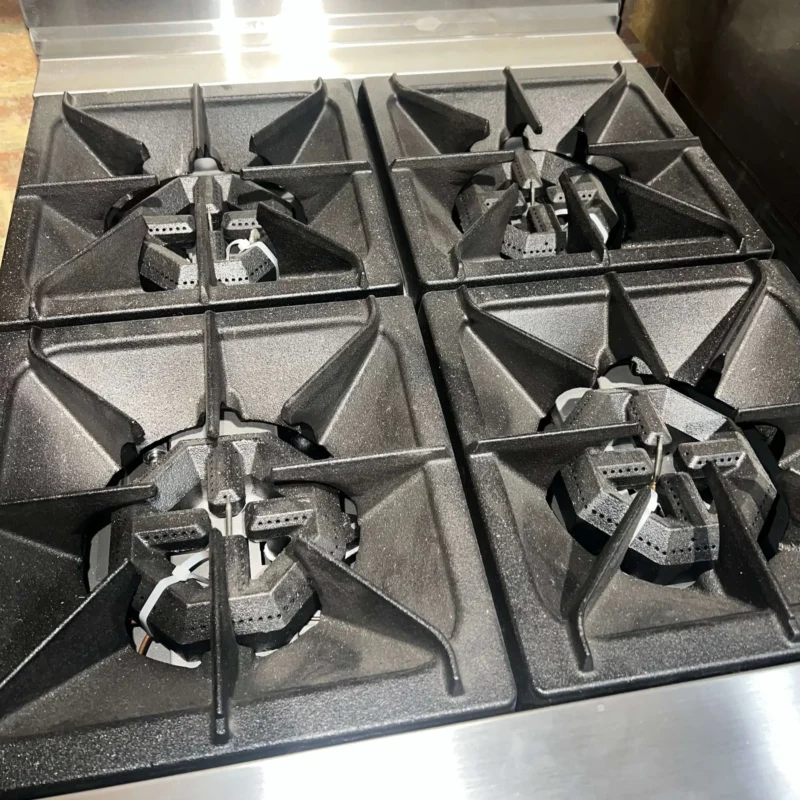 These compact and efficient cooking devices features a series of gas-powered U-shaped burners (each 16,000BTU/hr) positioned beneath a grate or grill surface, controlled every 12” width. They are specifically engineered for high-temperature grilling and searing, making them ideal for cooking various foods such as steaks, burgers, chicken, seafood, and vegetables.