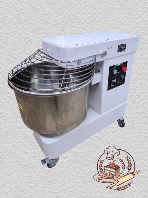 Rotoquip’s professional Italian dough mixer / kneader is built using high standard parts and materials. Heavy duty motor and gear box drives the mixer’s bowl as well as the spiral, increasing the speed and efficiency greatly. Equipped with stainless steel protective guard and timer, makes this hassle free and safe to operate. The stainless steel safety guard also serves as an electric cut-off switch. Mounted on 4 heavy duty castors, Rotoquip mixers are easy to manoeuvre and extremely easy to clean. Suitable for mixing flour in hotels, restaurants, pizzeria, public canteens and roti/nan shops