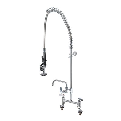 Double deck mounted pre-rinse with flexible hose + 6" bowl filling faucet