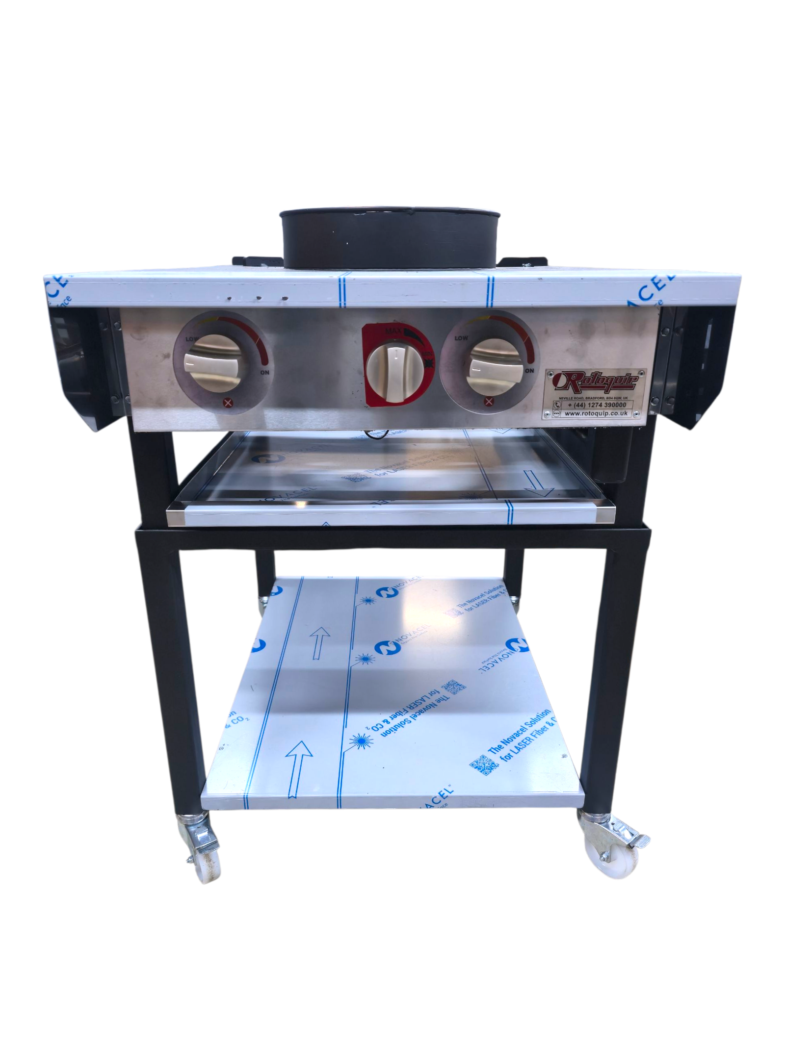 Whether you're boiling big pots of sauces or pan-frying delicious curries, the Rotoquip RCR Indian gas range has the functionality you need to get great results. Rotoquip range cookers are equipped with medium size cast iron burners on front for pan cooking, As well as large cast iron burners on rear for batch cooking simultaneously. Removable Steel rings, burners, trays and pan rack makes Rotoquip’s Range cookers an excellent choice in functionality and cleaning. A large removable and height adjustable pan shelf is fitted to the rear which also has a built in spice rack that can hold 1/3, 1/6 and 1/9 gastronorm pans. There is also a convenient large bottom shelf above castors for extra storage.