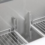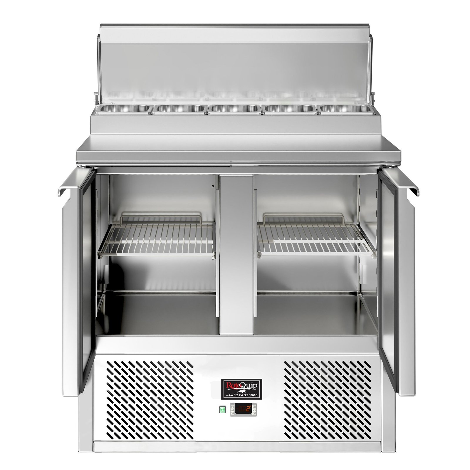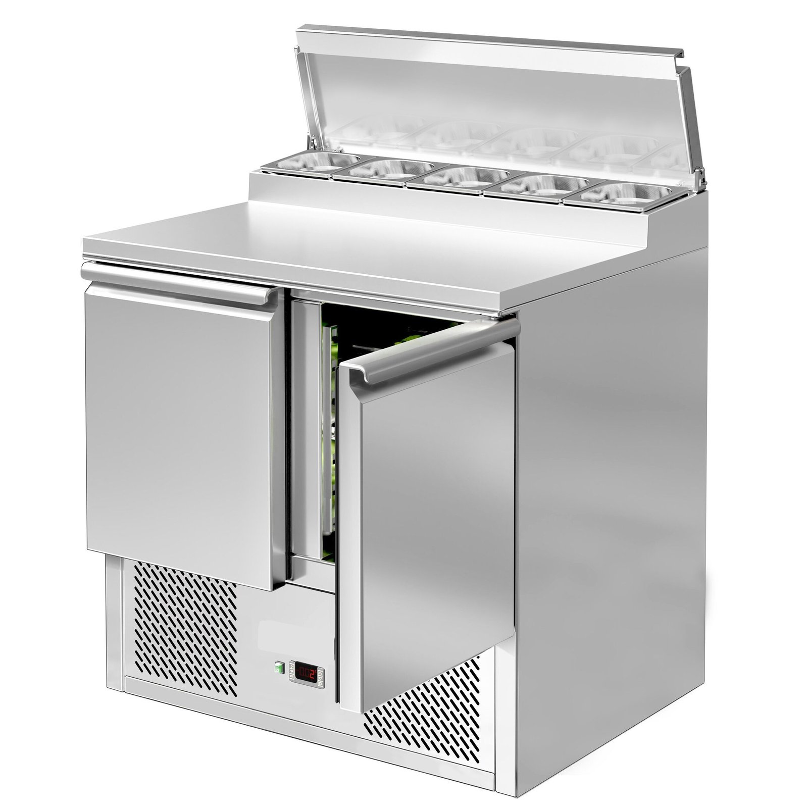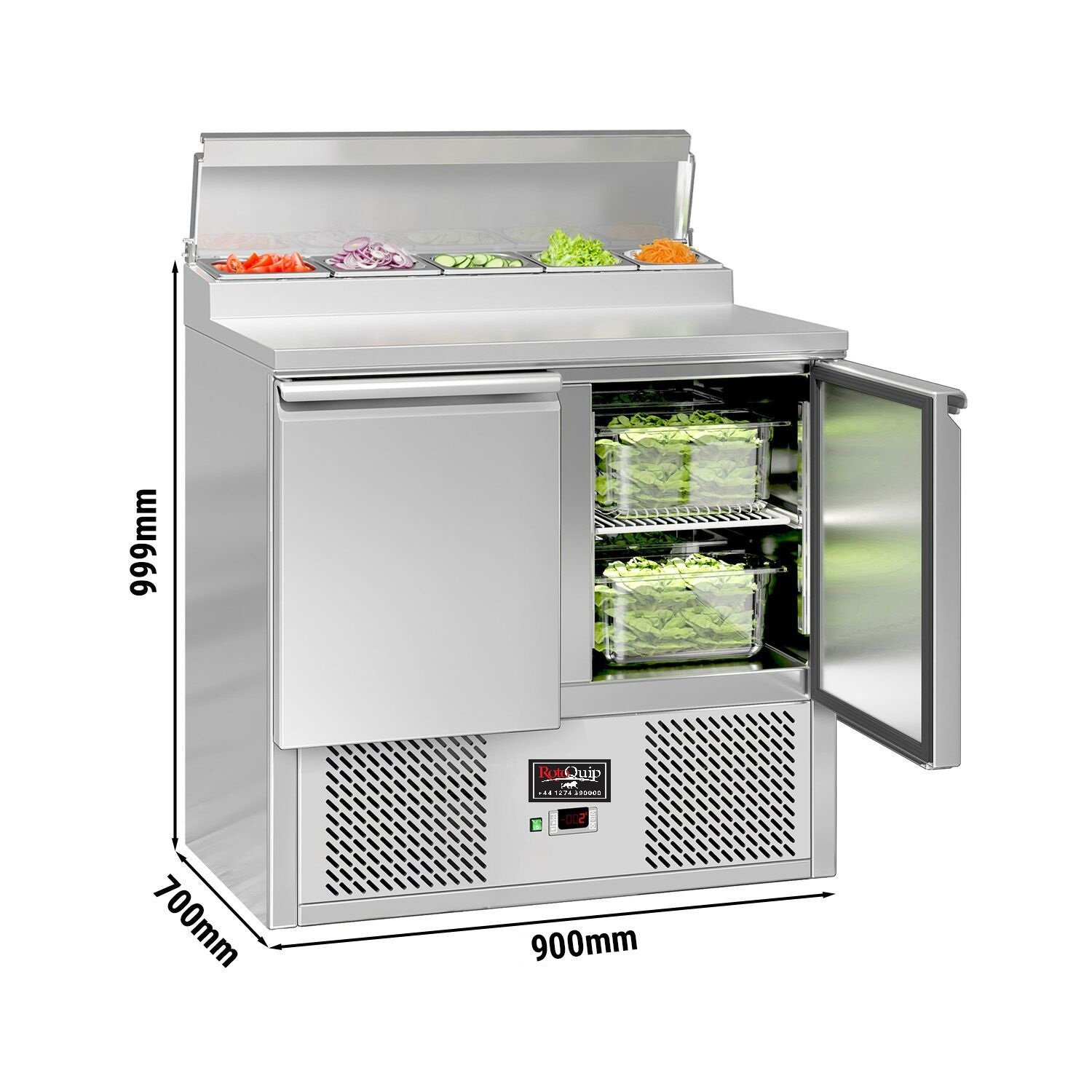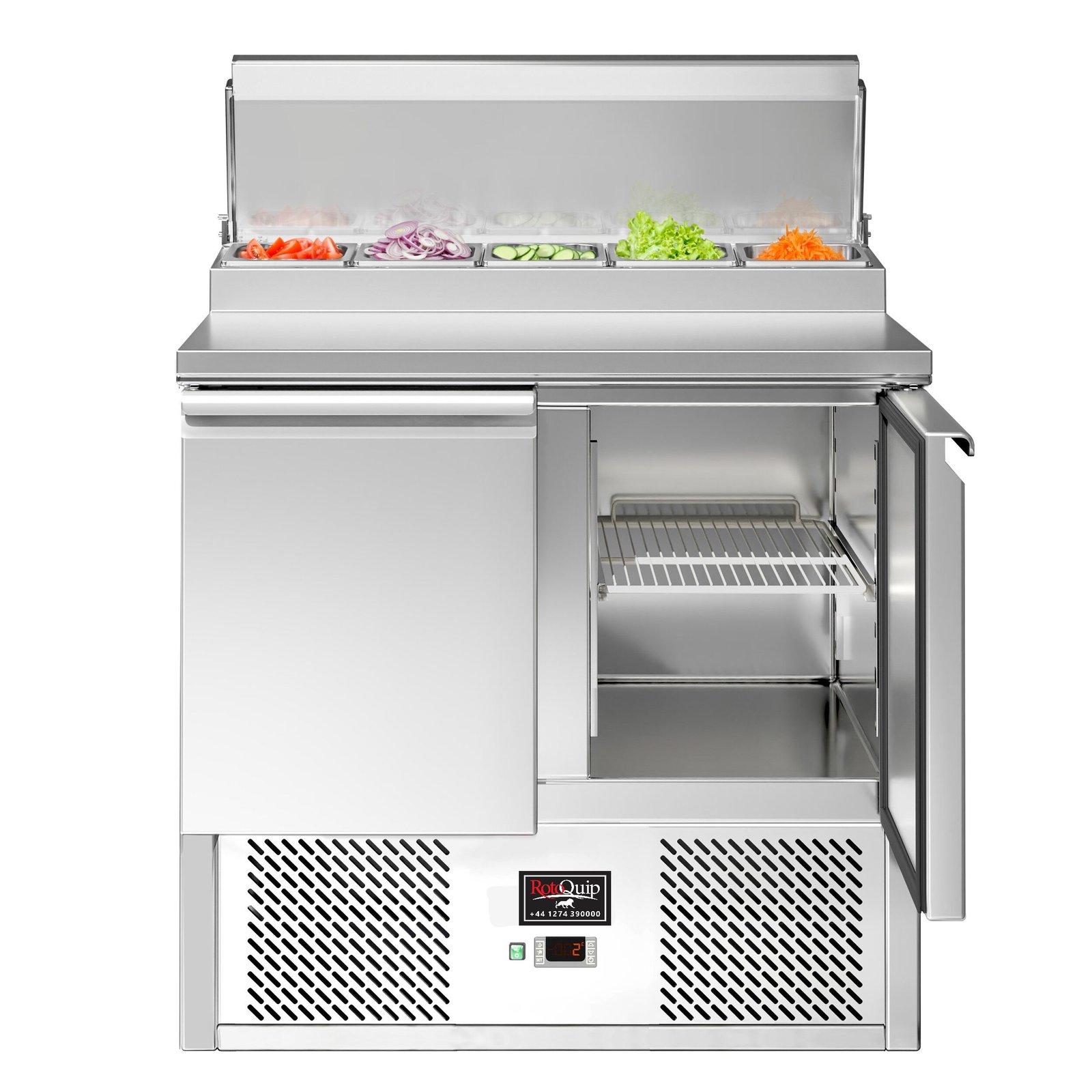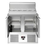 The raised topping unit accepts 5 x 1/4 GN pans in which to organise ingredients, keeping them ordered and close at hand for preparation during busy services. This ability to store separate foods makes this station perfect for the creation of salads and pizzas etc on the work surface.