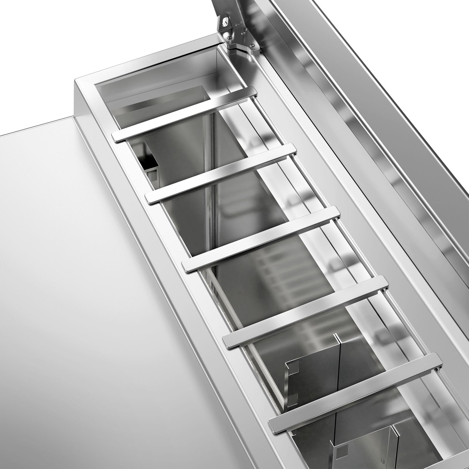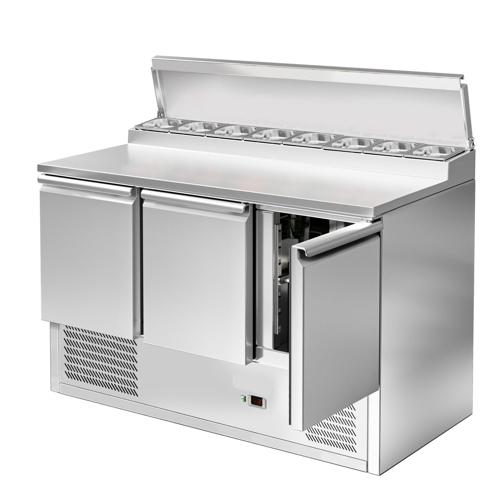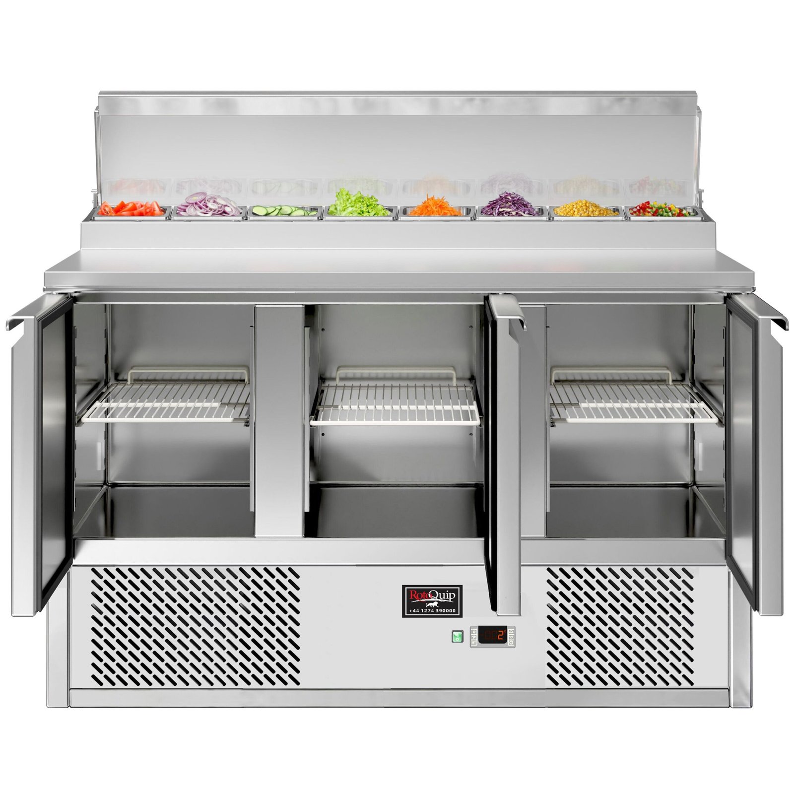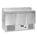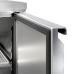 The raised topping unit accepts 7 x 1/4 GN pans in which to organise ingredients, keeping them ordered and close at hand for preparation during busy services. This ability to store separate foods makes this station perfect for the creation of salads and pizzas etc on the work surface.