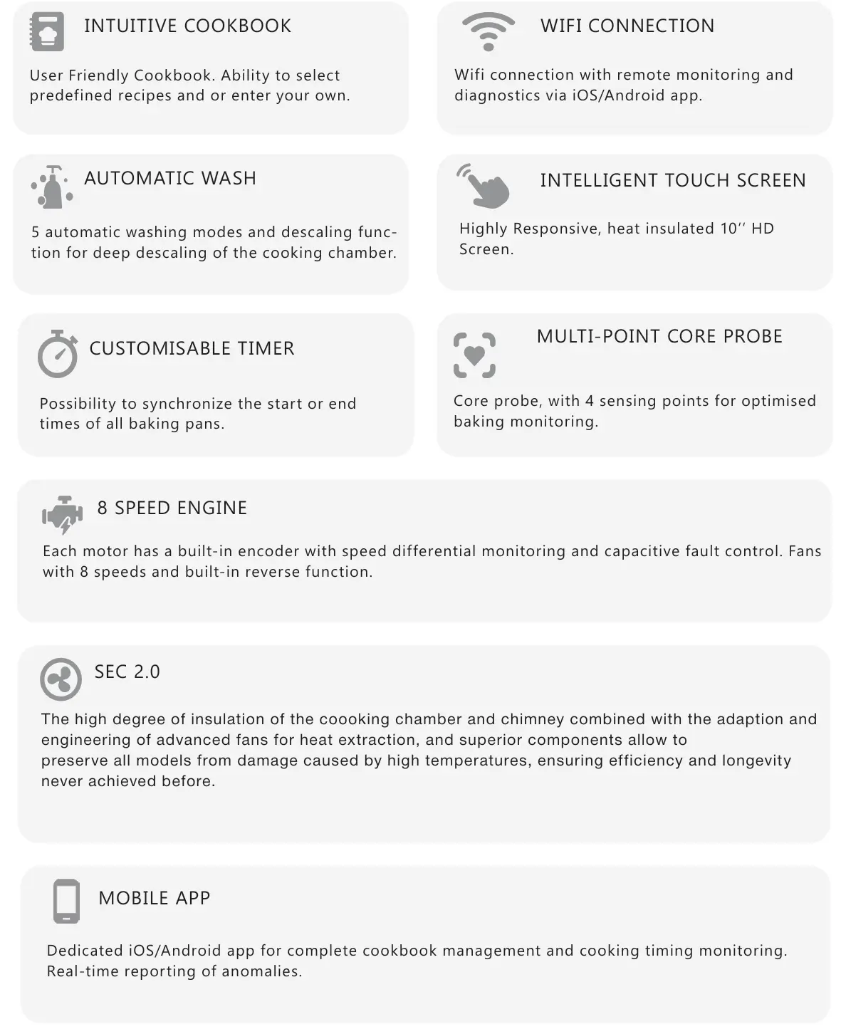 The Rotoquip RYSD-06 combi oven takes "easy-to-use" to a whole new level. The time, temperature, and humidity are controlled with 3 simple knobs. Furthermore, you can rest assured knowing the humidity will be self-adjusted once the temperature has been set. (though it can still be manually adjusted). Being boilerless, this combi oven uses a form of direct steam creation that will work to save you energy and water.