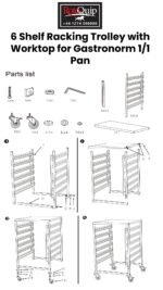 Be the first to review “Racking Trolley 6 Shelves with Work Table Top for GN Pan 1/1 – 111601” Cancel reply