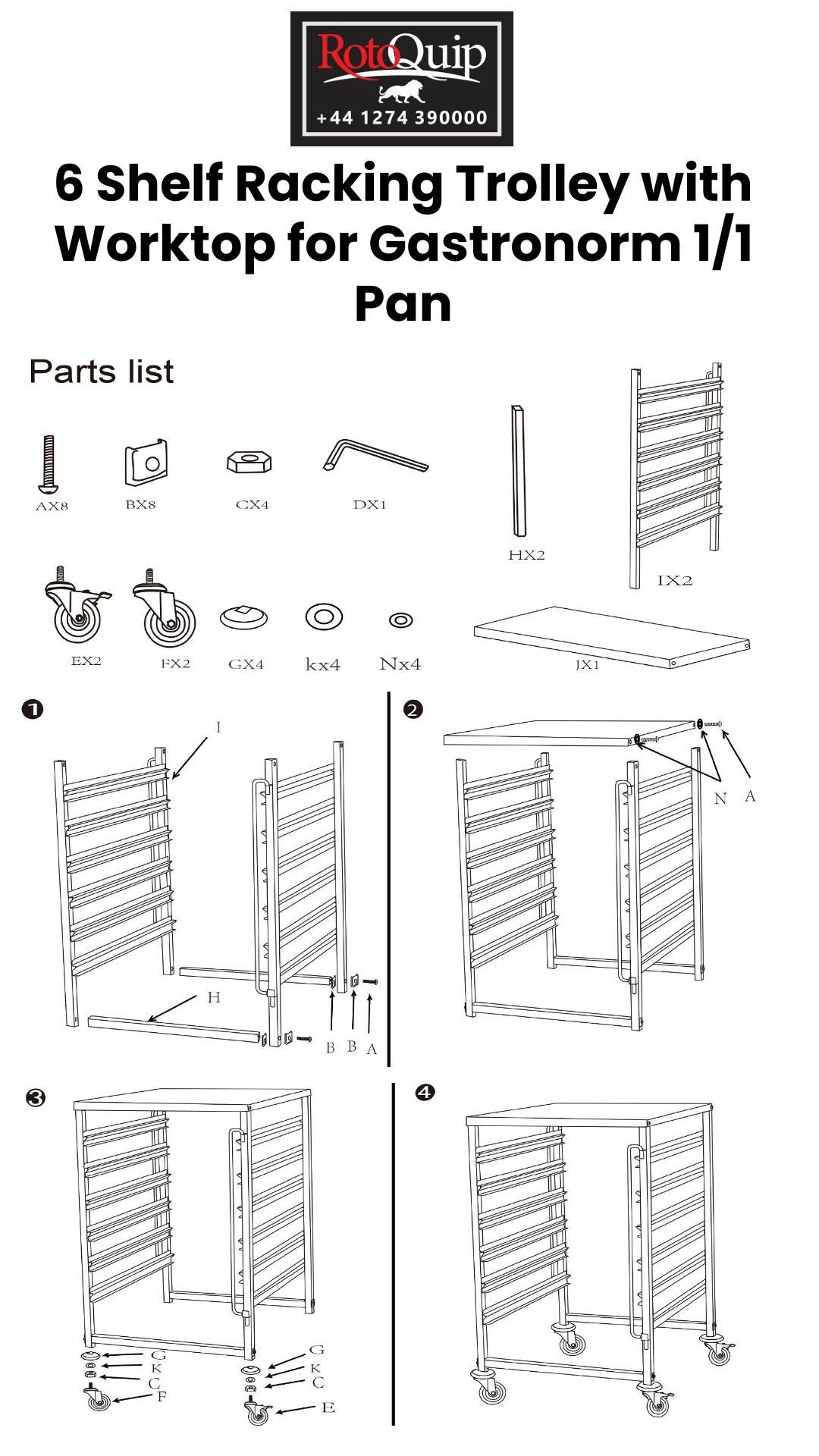 • The Trolley is capable of holding sizes 1/1 gastronorm containers