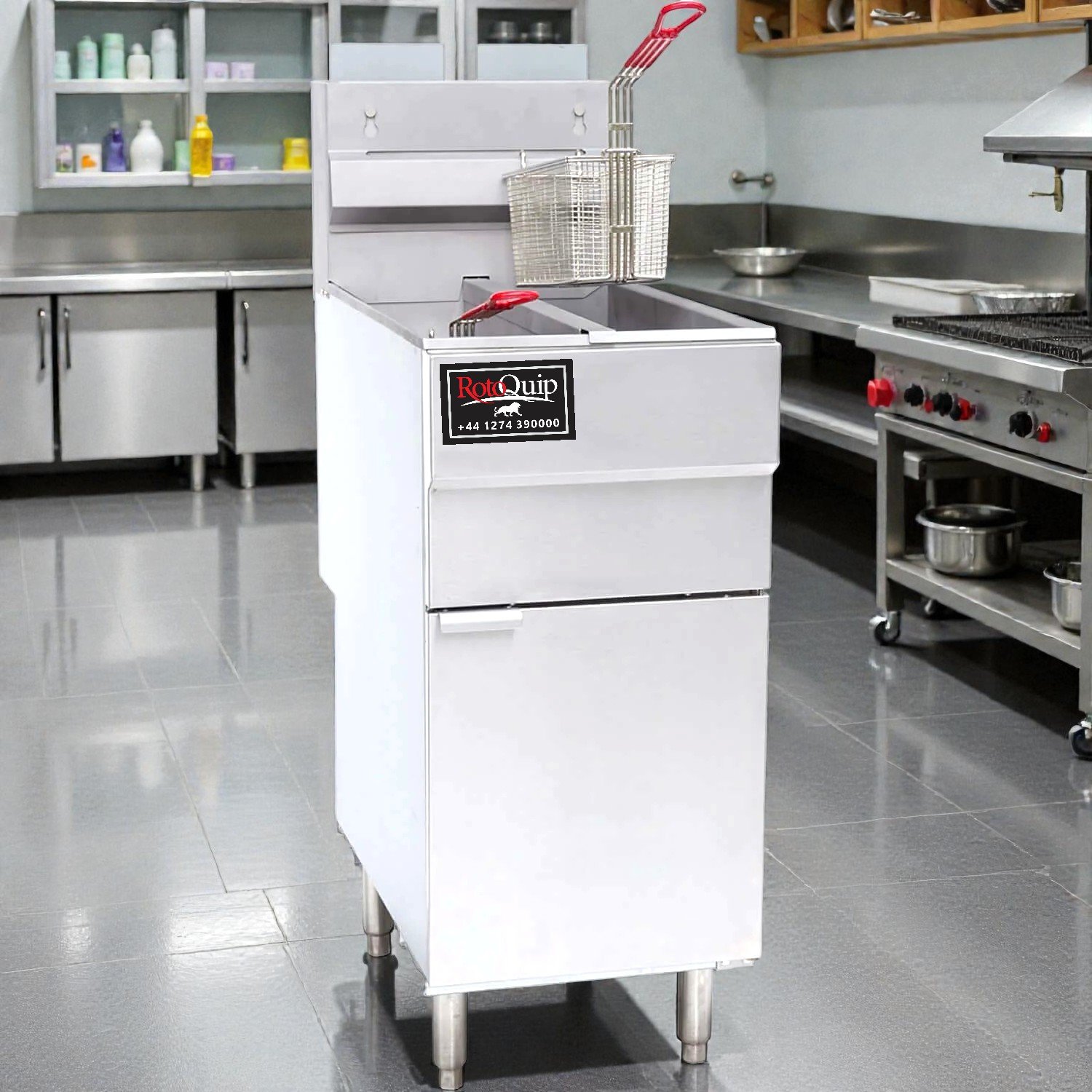 Rotoquip’s double tank 4 burner commercial gas deep fryer gives consistent results throughout service. Heats up quickly and maintains the required temperature. Fully welded 13.3 litre (each) double stainless steel oil tank which utilises a seated cooling zone to help reduce food residue whilst prolonging oil’s lifespan. High quality Italian SIT thermostat maintains a selected temperature so you can efficiently and confidently control burners. Easy to use and easy to clean oil change thanks to simple front door access with front facing drain tap. Manual ignition, stable flame tube burners and standby pilots allow for quick recovery. frying two products at once, it’s the ideal deep fryer for confined kitchens with high turnover. Finished in low maintenance, seem free, 304 stainless steel for a quick kitchen cleanup. Approved gas appliance, both natural gas or LPG versions.